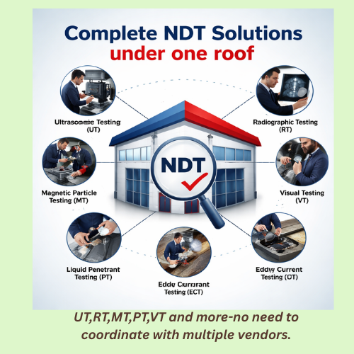 We are a professional Non-Destructive Testing (NDT) company providing reliable inspection services to ensure safety, quality, and integrity of materials and structures. Our certified inspectors deliver accurate results using advanced testing techniques and equipment. We work in accordance with national and international standards to meet client requirements. With a strong focus on safety, quality, and timely service, we help our clients build with confidence.